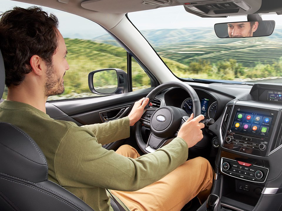 Une Subaru est équipée d'un système d'info divertissement qui vous permet de rester connecté partout. L'écran tactile en tant qu'unité principale offre un accès intuitif à la navigation et à l'audio, tandis qu'un nouvel écran multifonction informe le conducteur des éléments clés du véhicule.