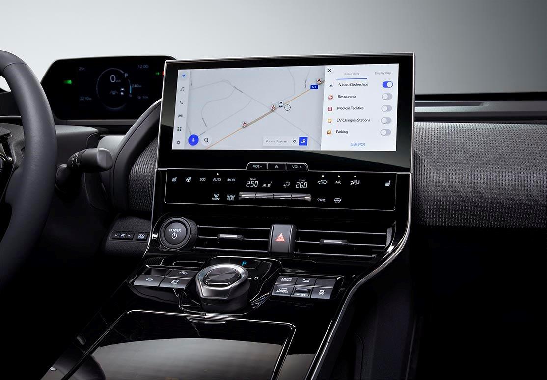 L'aménagement du poste de pilotage de la SOLTERRA représente la philosophie de conception de Subaru : visibilité, simplicité et facilité d'utilisation. Les informations essentielles pour une conduite sûre sont affichées sur un tableau de bord bas et une console à haute visibilité.