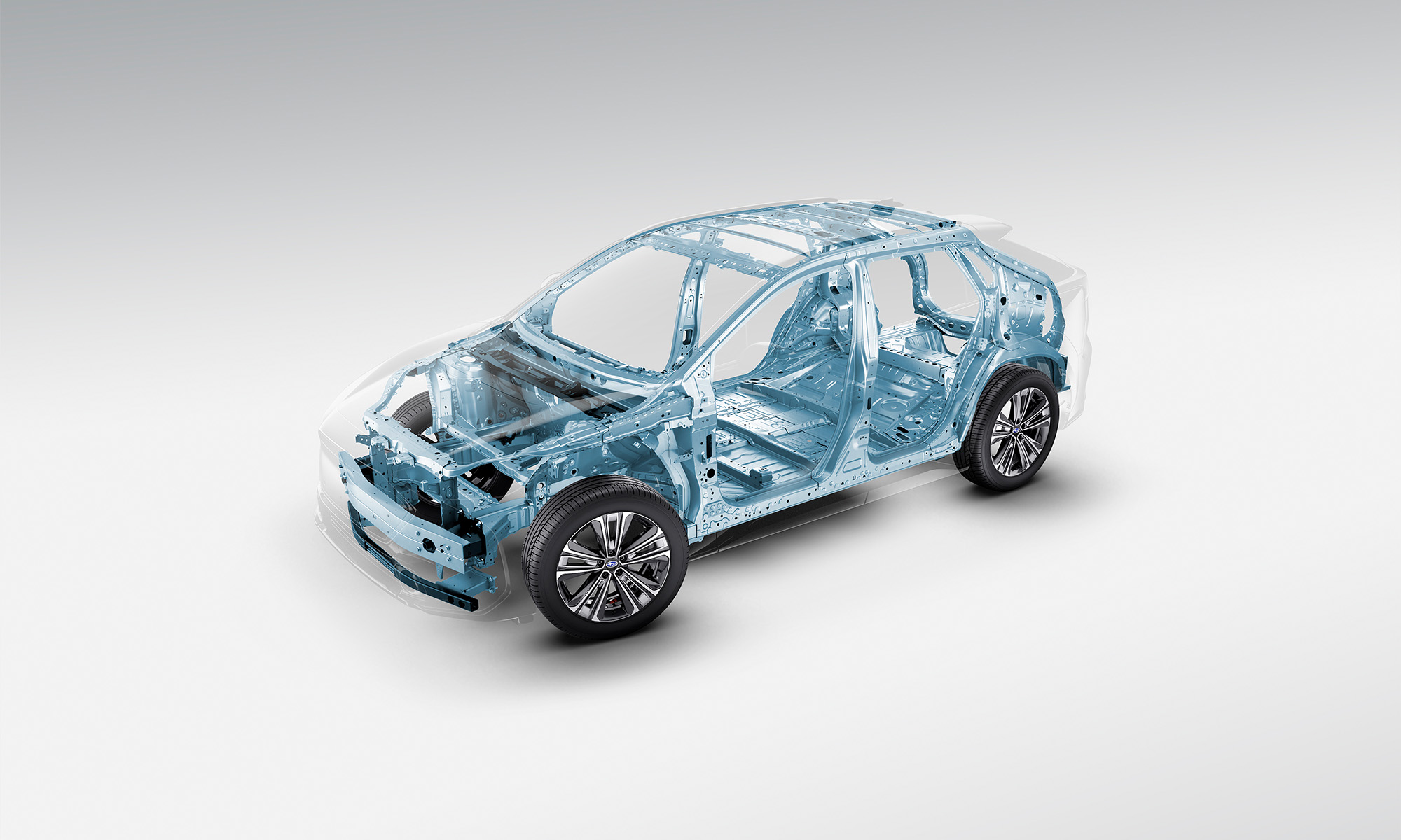 La calandre hexagonale parfaitement conçue représente l'efficacité énergétique d'une EV. La carrosserie aux lignes horizontales commence au niveau de la calandre et les ailes dynamiques qui s'incurvent vers l'extérieur depuis l'intérieur montrent la puissance d'un SUV.